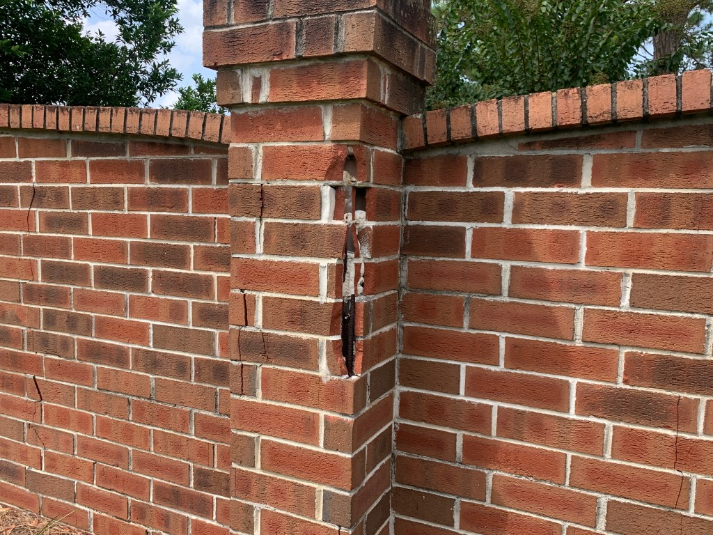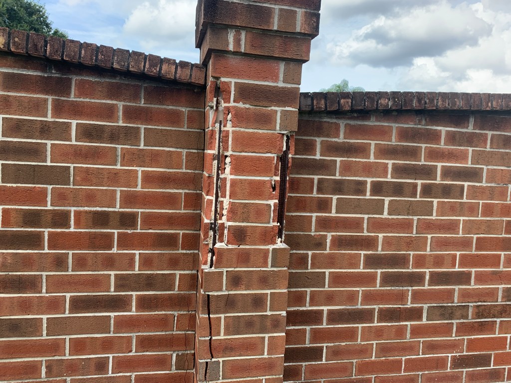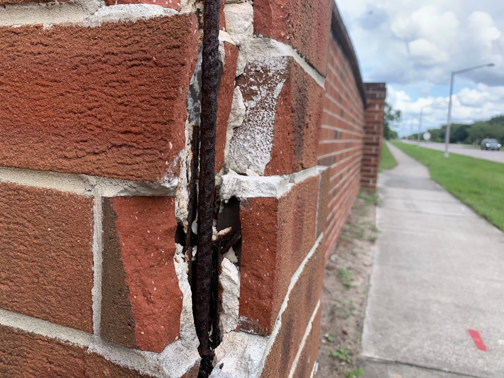 Sections of the wall were analyzed along Dr. Phillips Blvd and Wallace Rd. The Engineer studied (both) the street facing side and then entered from the owner’s side and studied from that side as well. The points of decay and characteristics of failure were consistent from both sides. The study revealed significant erosion over the years. Excessive wind, heat and rain has caused the rebar to expand. The expansion of the rebar has caused the brick to crack and erode. The Engineer did not recommend a patch job because